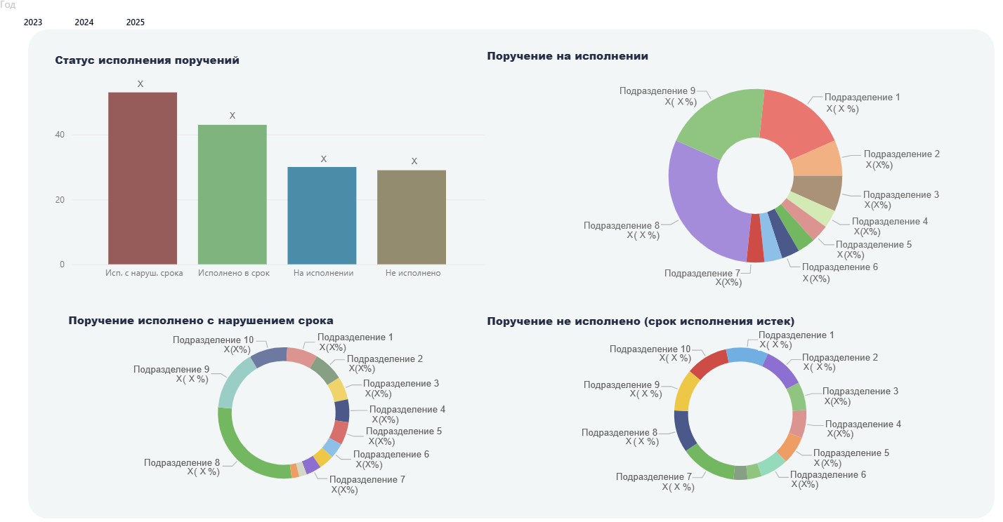 - Контроль исполнения: работники ДУОиФР формируют в системе поручения на исполнение мероприятий по управлению рисками их исполнителям. Руководство в режиме реального времени видит статус каждого мероприятия в интерфейсе аналитической платформы (