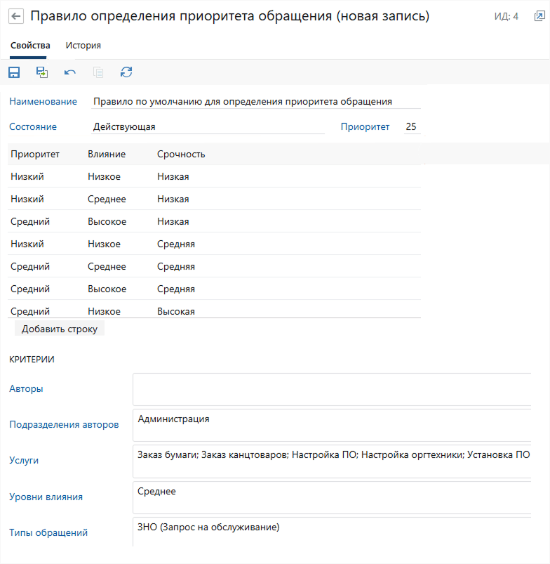 - Далее необходимо выделить группы потребителей: топ-менеджеры, офисные сотрудники, производственники и др. Для каждой категории можно настроить свои приоритеты и время реакции на обращение.