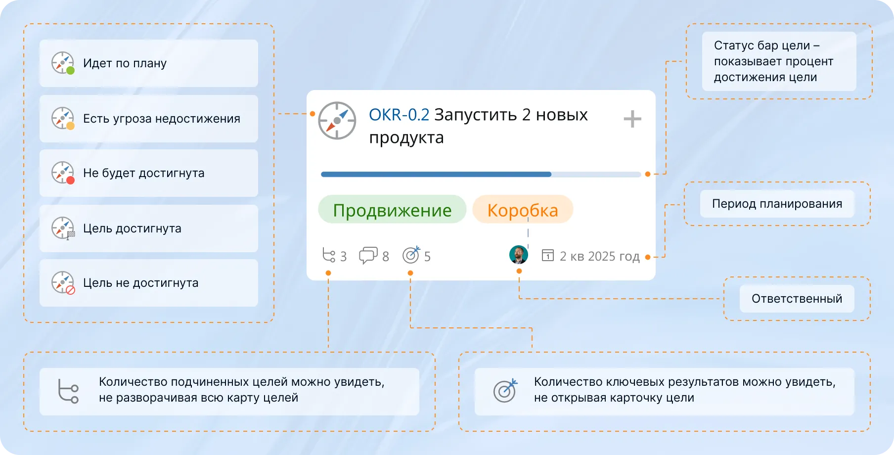 Процессы утверждения целей адаптируются под структуру вашей организации.