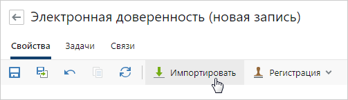 При импорте поля в карточке доверенности заполняются автоматически. Вместе с доверенностью загружается электронная подпись руководителя.